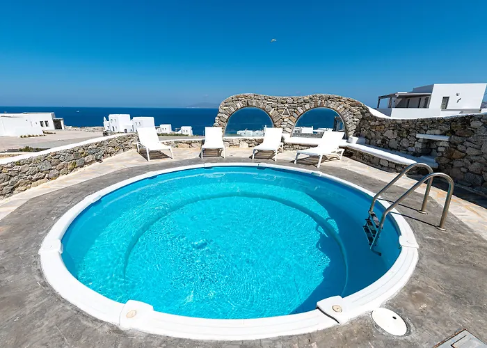 Ca prend 10 minutes de route de villa jusqu'à Petite Venise, et se rendre à l'aéroport de l'île de Mykonos prend environ 10 minutes en voiture. La plage la plus proche est à une distance de 600 mètres. Vous pouvez vous rendre à l'église Panagias Paraportiani en quelques minutes en voiture.